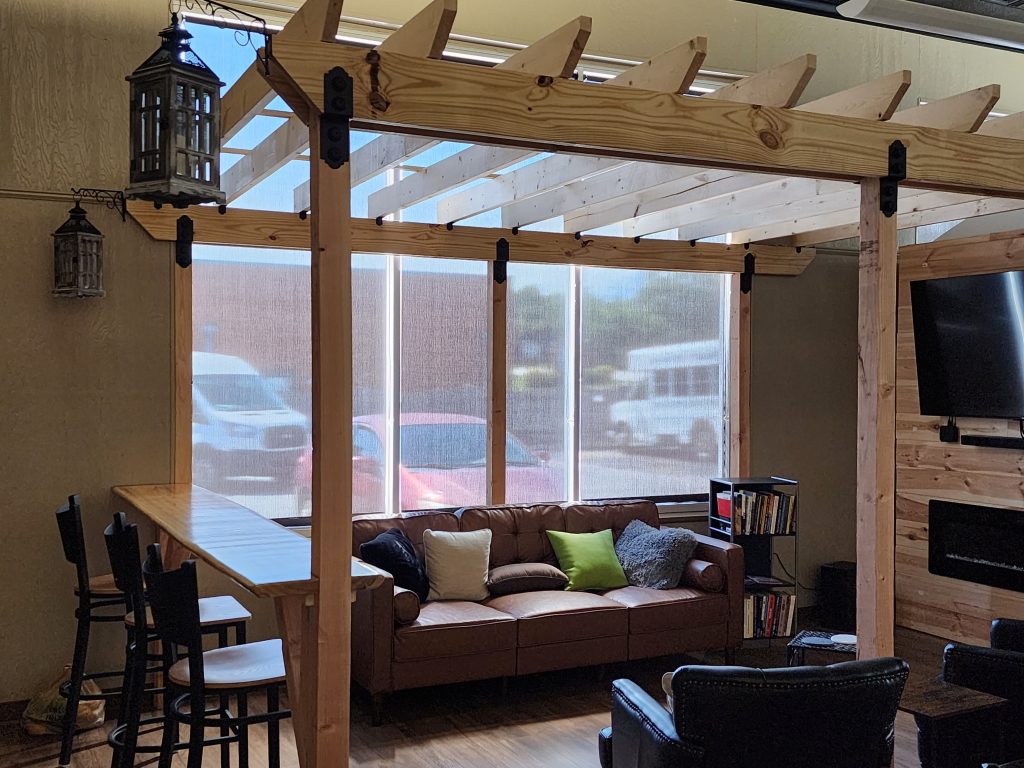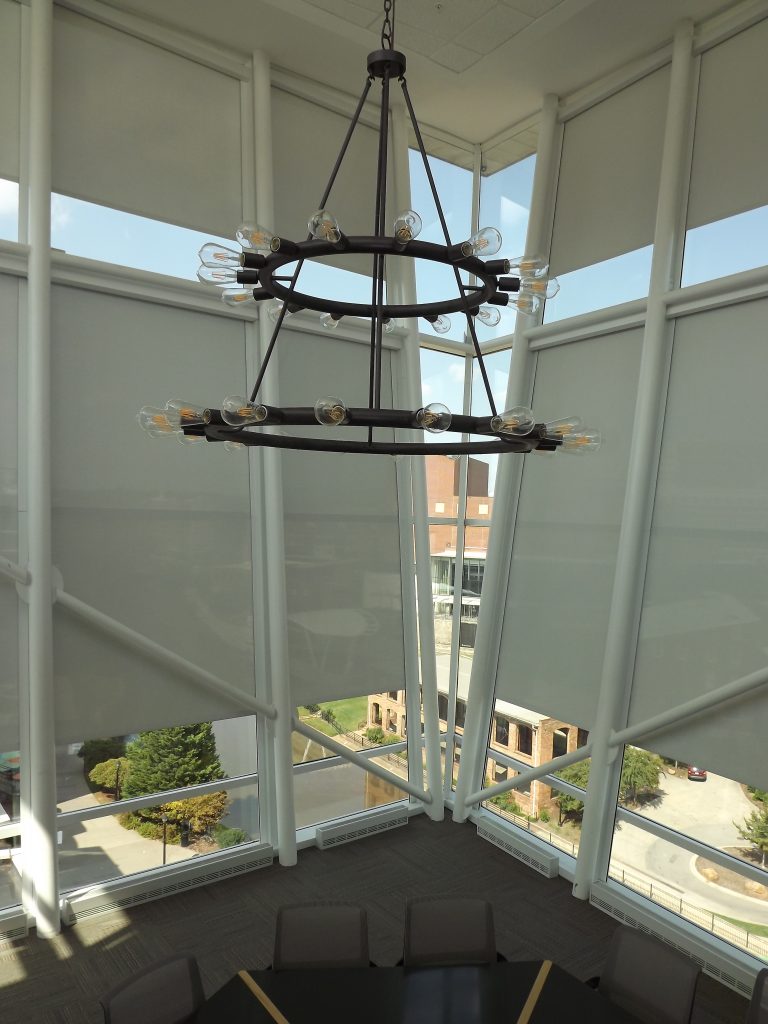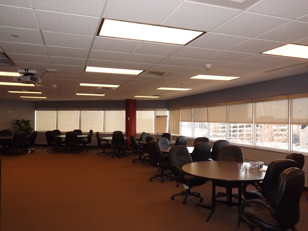 A cozy coffeehouse made even more enjoyable by reducing the glare on diners. - Office Conference Room – Greenville, SC