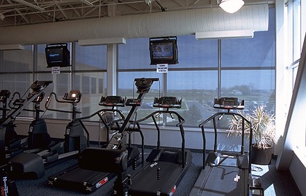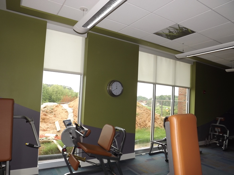 Roller shades installed across multiple physical therapy rooms. - Coffeehouse & Cafe – Easley, SC